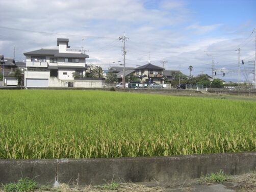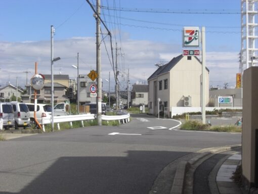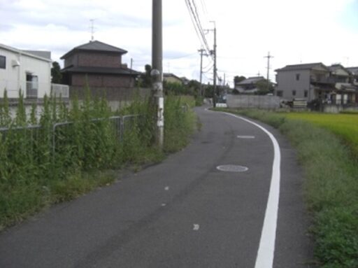 旧道は真っ直ぐ進んでいたが消失したので、右に少し寄って上植野・菱川交差点に迂回