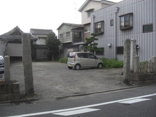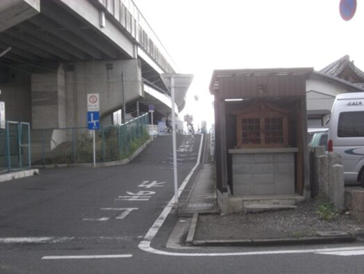 西羽束師川に架かる長権堂橋を渡った東北から南西斜めに交わる道は 久我畷道 との辻で久我畷道南西への道