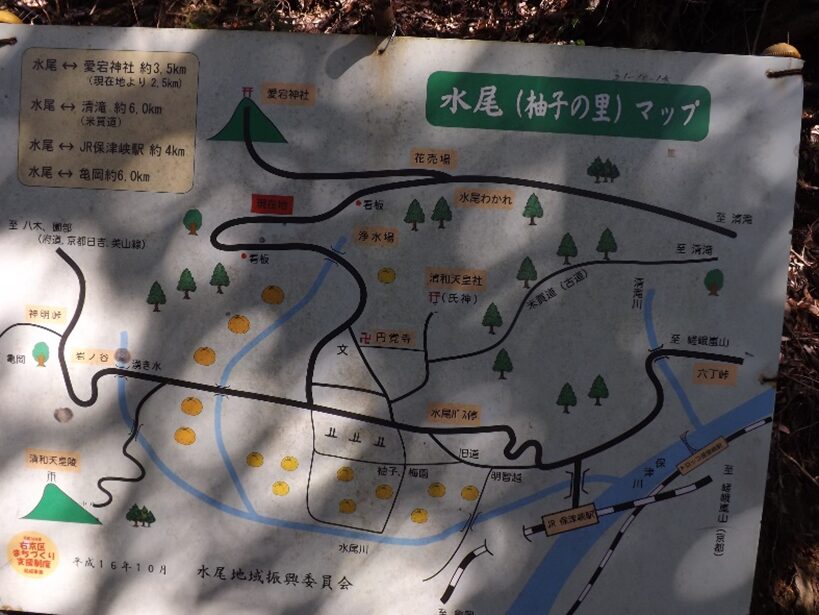 下った突き当り市立水尾小学校のところで右に折れすぐ左に下りますが
