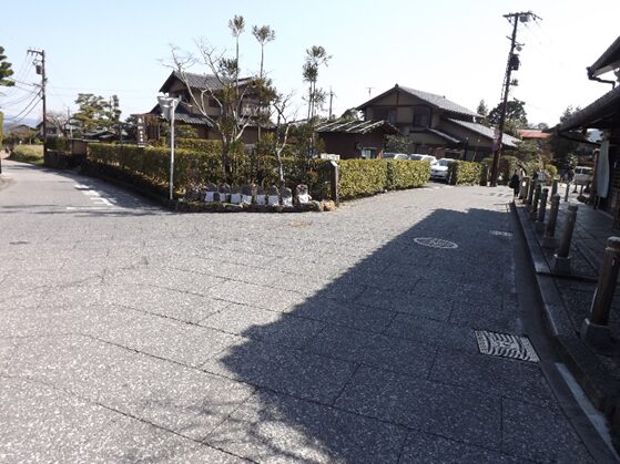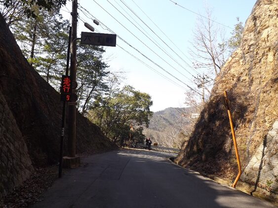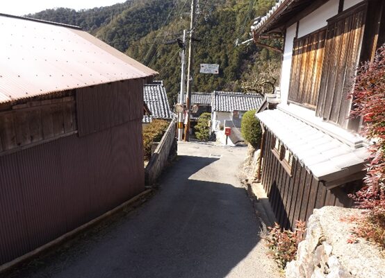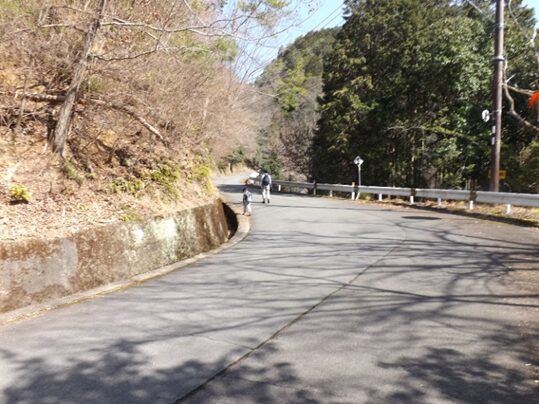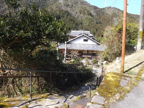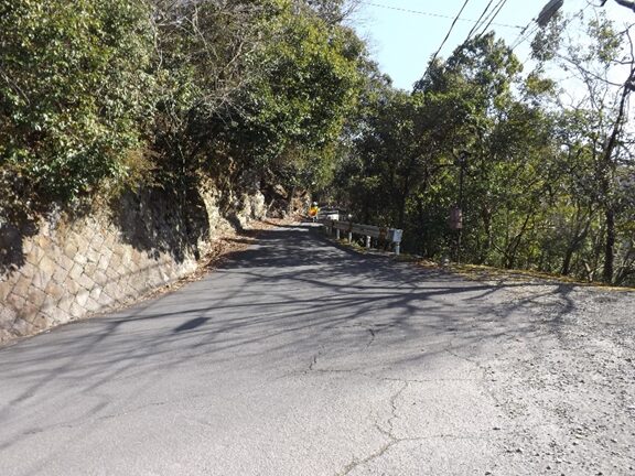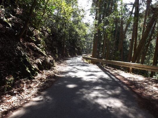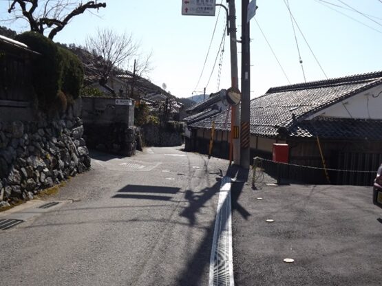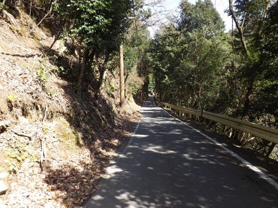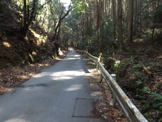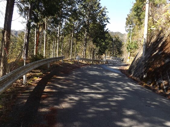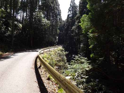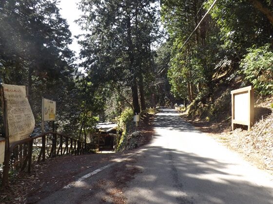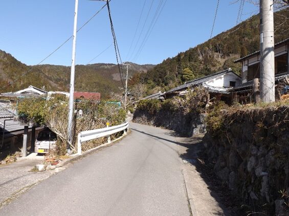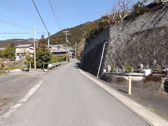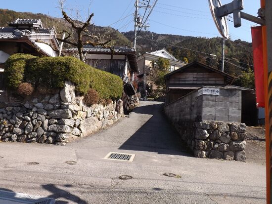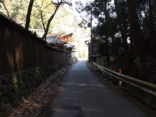 元に戻り坂を少し下って行くと水尾の里の中を抜ける車道に出ます
