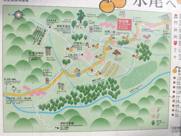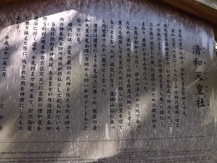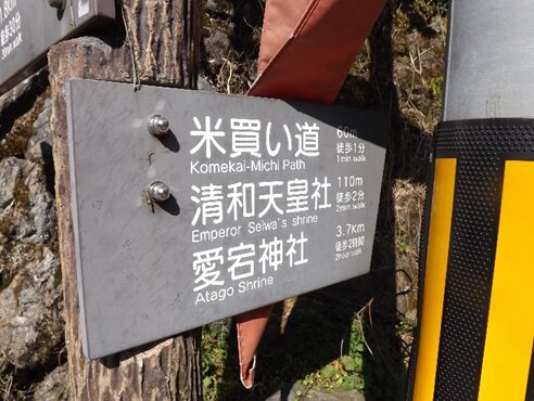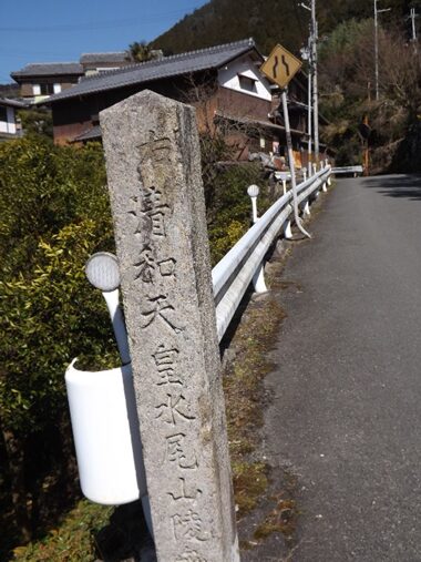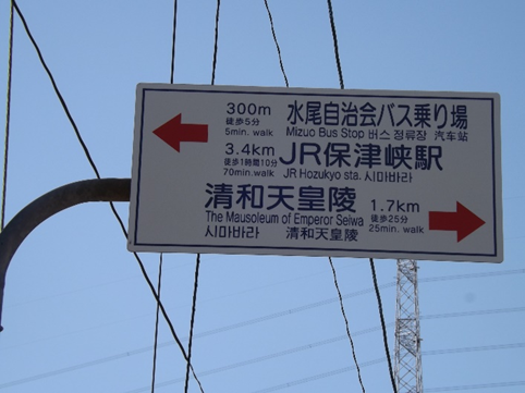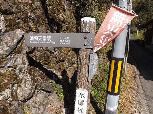そこに掲げられた標識、右に1.7㎞上ると清和天皇陵に行けますが、少し遠くてまた方向が違うので寄れません