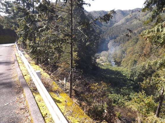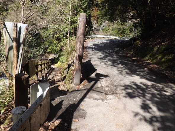 暫く緩やかな下り道を進んでいくと、谷川に沿って細い道が見えてきます