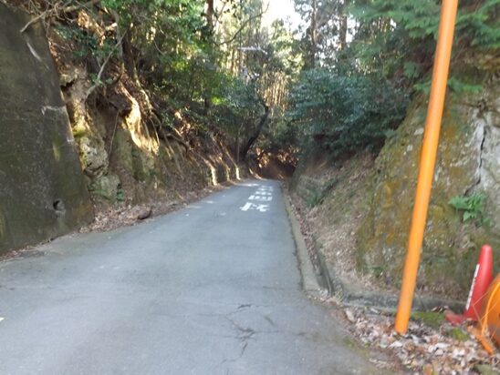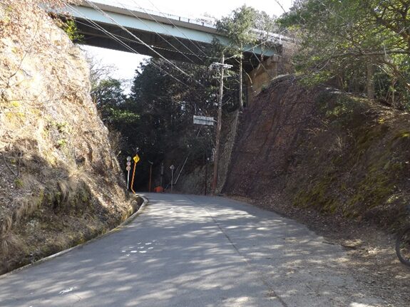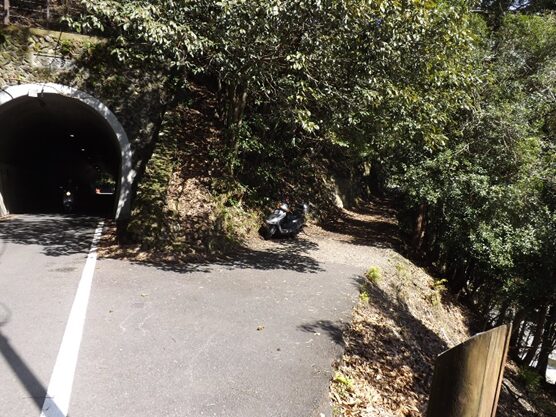 トンネルをくぐりますが、手前右から回る以前の道が急斜面についています
