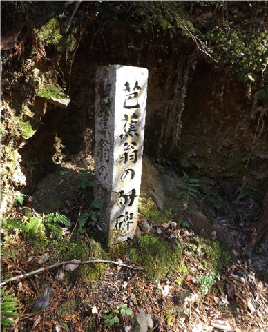 道左に 芭蕉翁句碑の標石 芭蕉の句碑があるということは古道だ