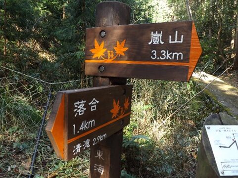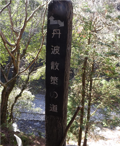 落合橋を渡った左、道が分岐しています左は清滝への道で川沿いに沿って歩く、「丹波散策の道」の標柱が立っています