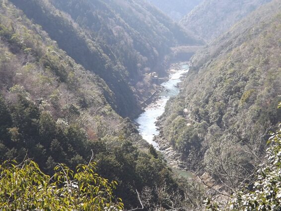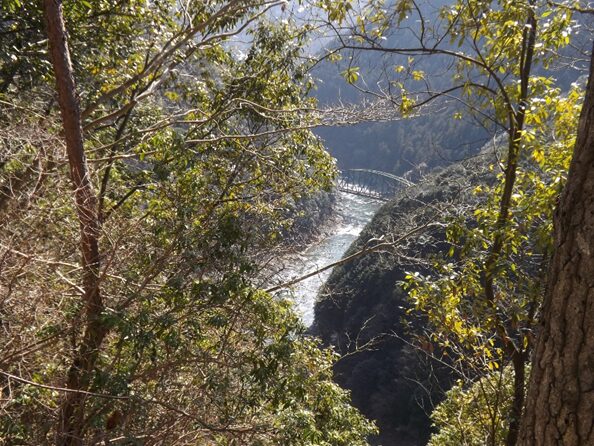 かなり高く昇ってきました、保津峡の素晴らしい眺め、ゆっくり眺めながら歩いています。車ではこの感覚は味わうことができません