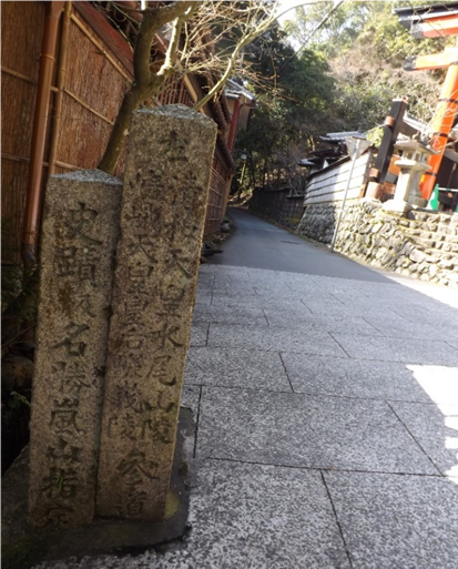 道標が二基 「左 清和天皇水尾山陵 嵯峨天皇皇后嵯峨陵参道」 「史跡 名勝嵐山拾・・」天皇・皇后の陵がある道なので、やはり古道であった。思いがけず素晴らしい古道を歩いた