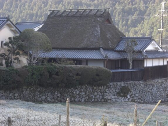 右手に茅葺の民家を見つけた、いつもながら子供の頃の原風景を見ているようでホットする