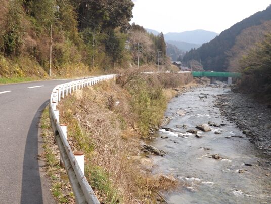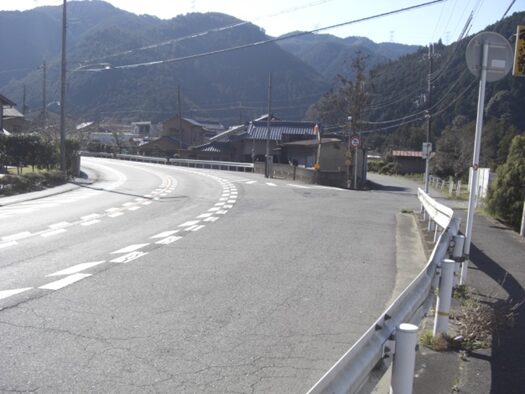 菜摘大橋を右に見て、北菜摘から下矢治にかけて吉野川と共に道は大きく右にカーブします