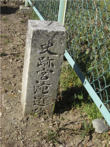 右手金網でフェンスしているところに 遺蹟案内道標 フェンスの途切れたところを少し入ると