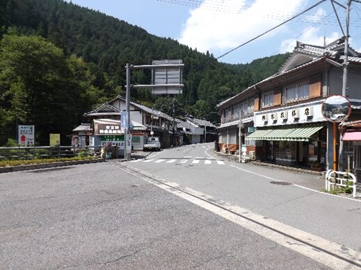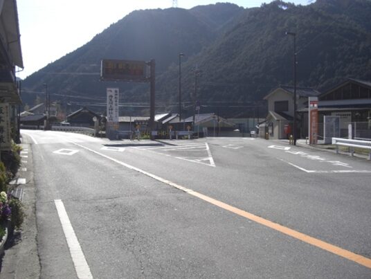 橋を渡ったすぐ先、鷲家宿の中心の辻にでます。
