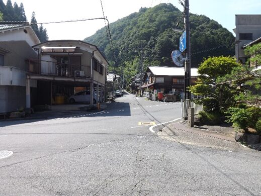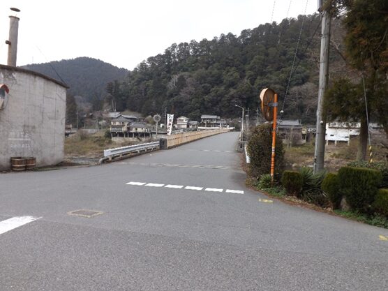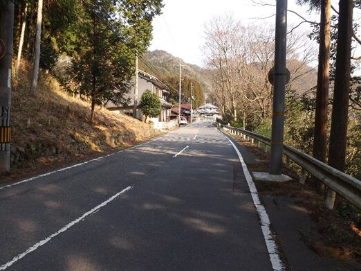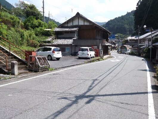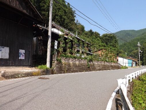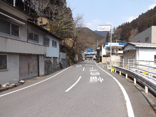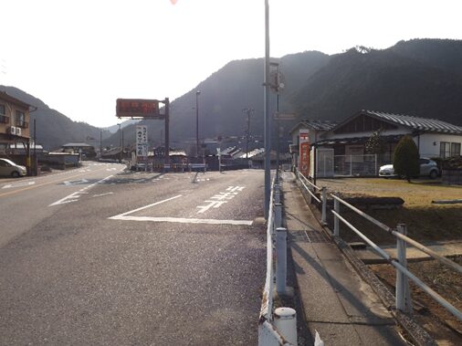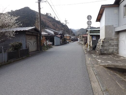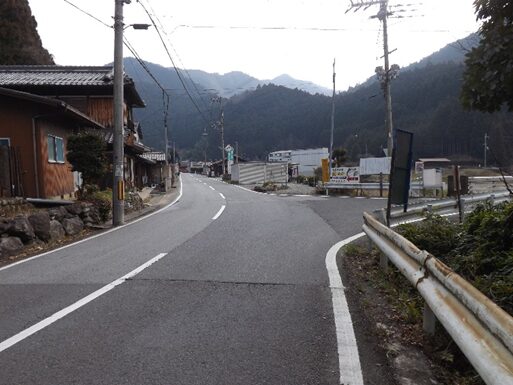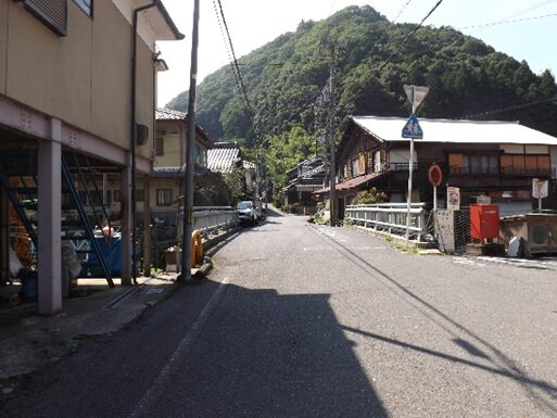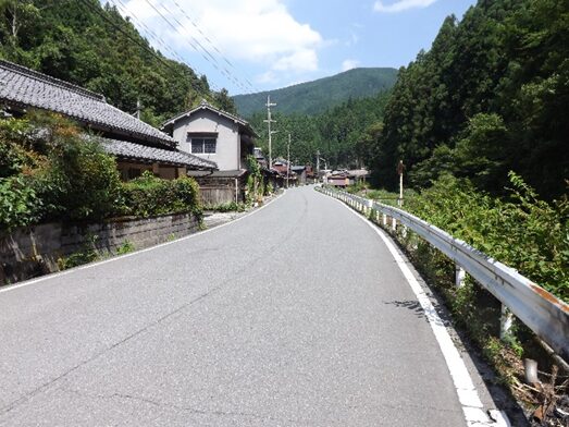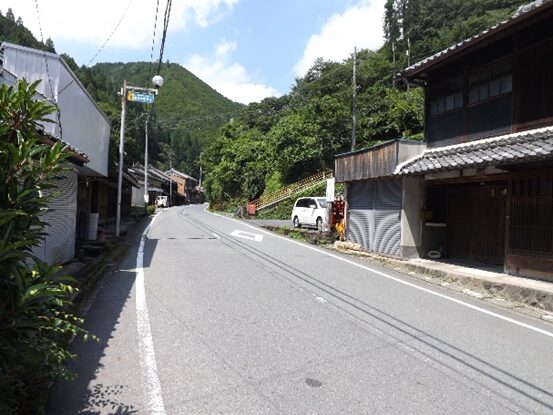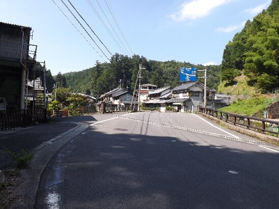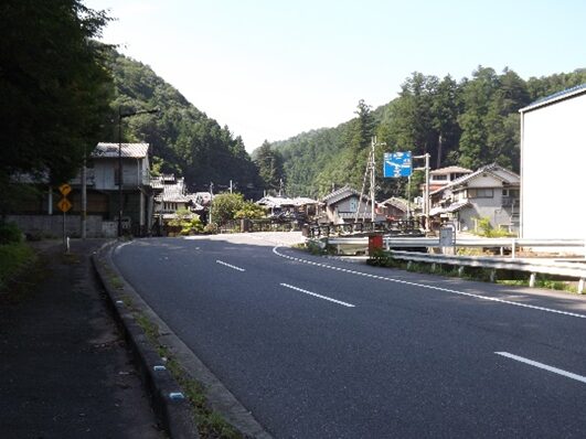 宮滝の集落入り口。国道は左側を平行して走っています