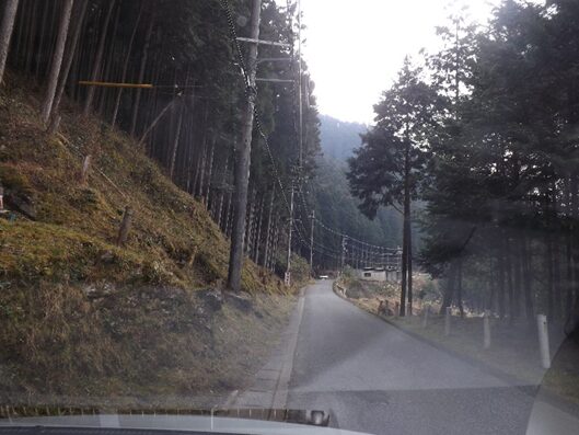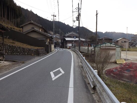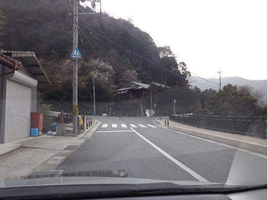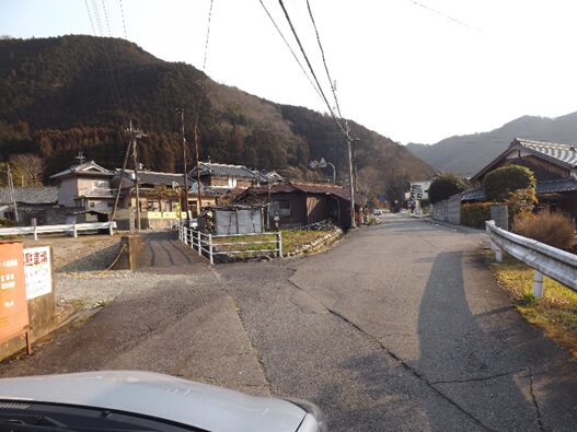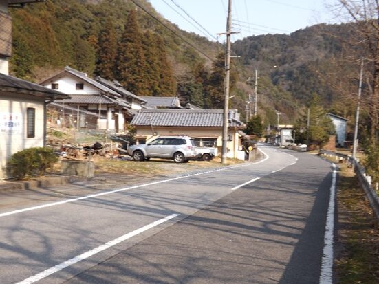 その先、国道は右に大きくカーブして宮滝地区に入ると左にカーブするところ右に入る旧道があり右に入ります