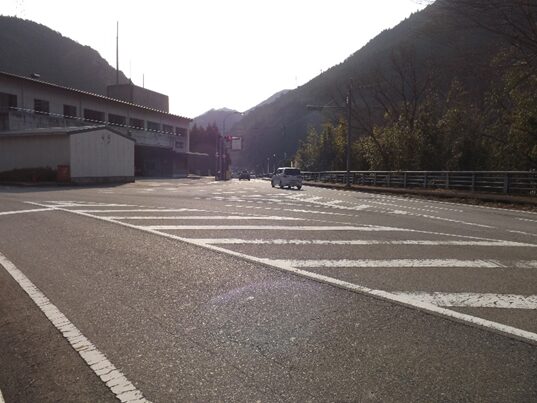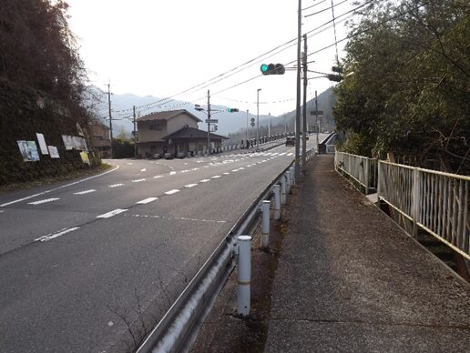 十字路を左に折れた国道169号線の交差点です