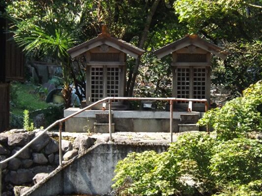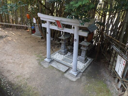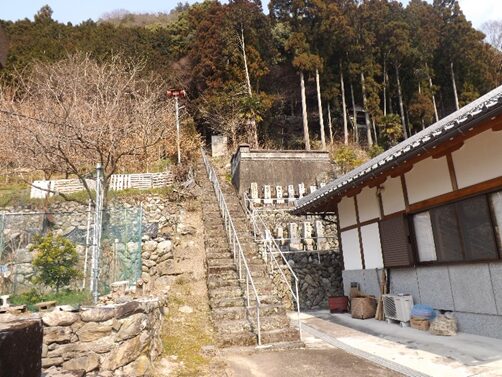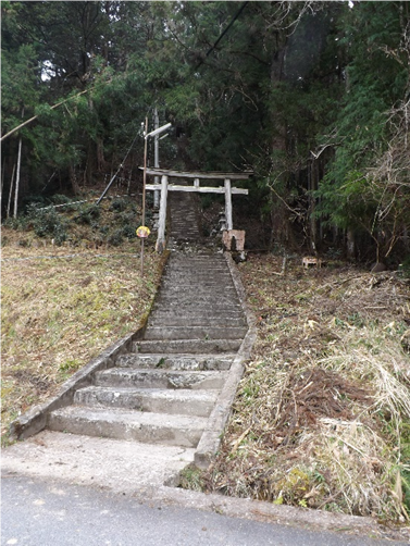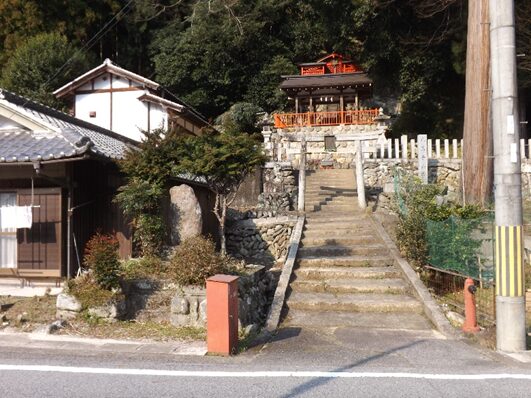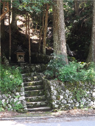 右の石段の上に 祠