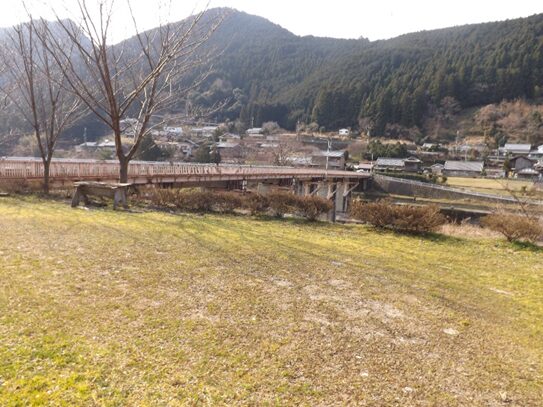 吉野川に架かる菜摘大橋がすぐ先右に見えます
