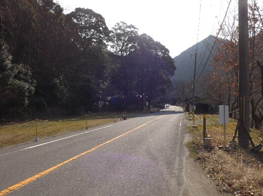 このすぐ先で道は左に急カーブします