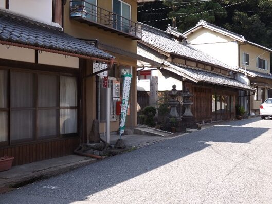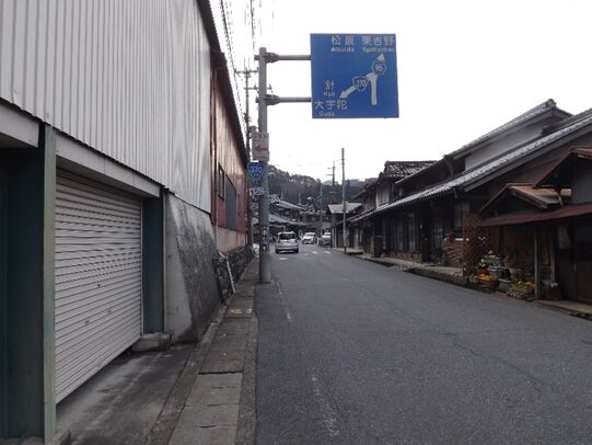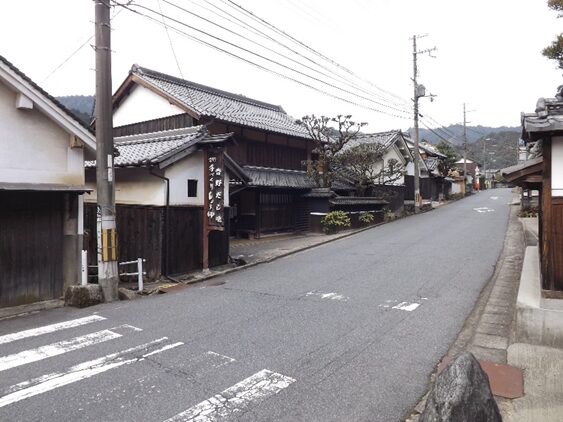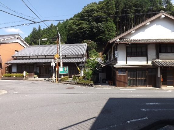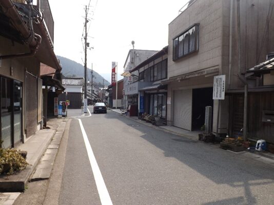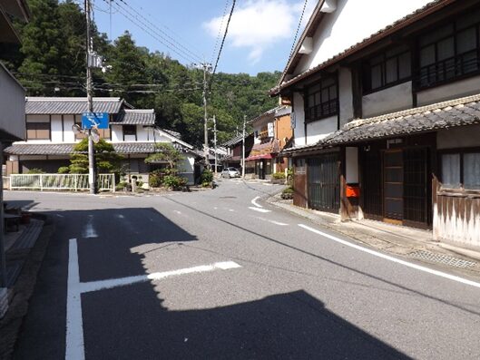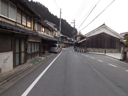 合流後の伊勢南街道を松阪方面に進む街並み旧家が並び宿場風景があります