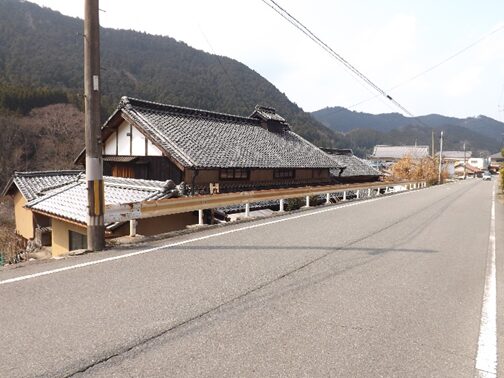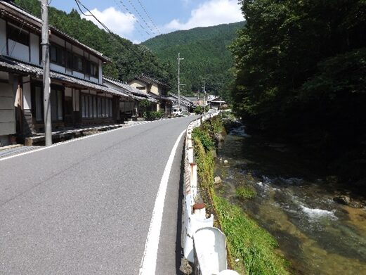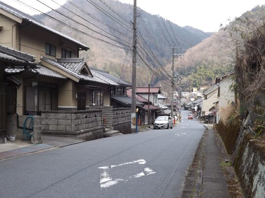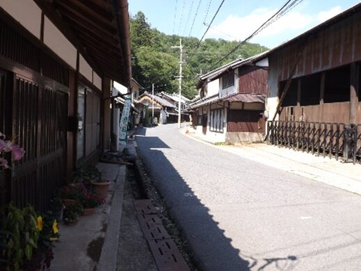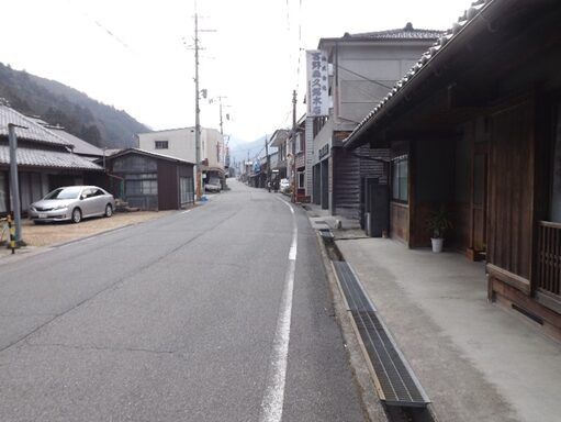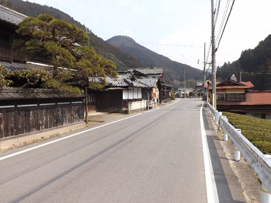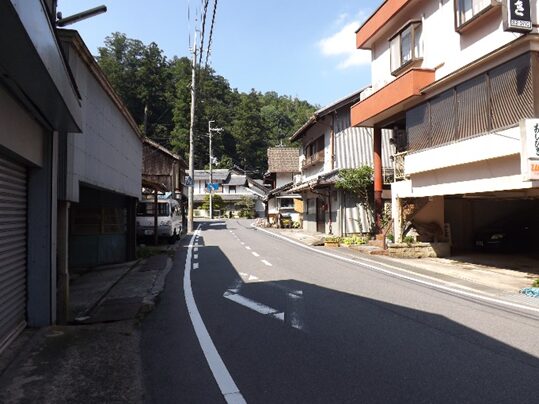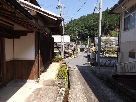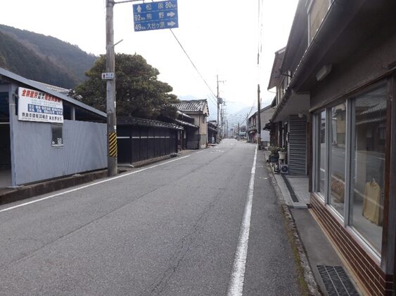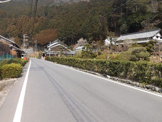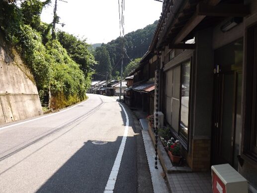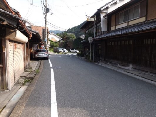 その先も宮滝集落を進む。左の国道は大型車で車が多く危険だが、一筋街並みに入るだけでこんなに静かで街道の面影が残っている