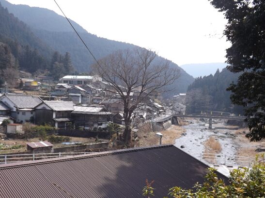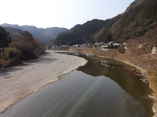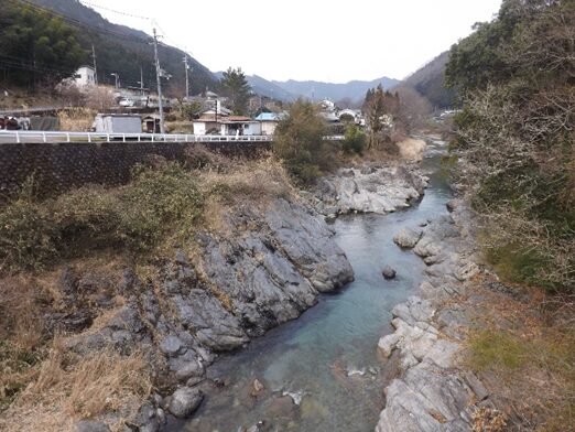 橋から左の鷲家川と鷲家の集落