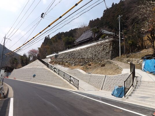 左に 六地蔵 が台地の上に並んでいます