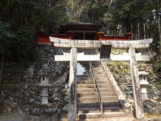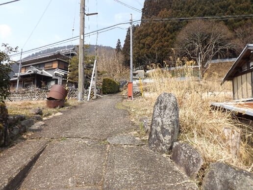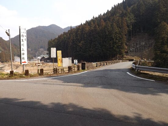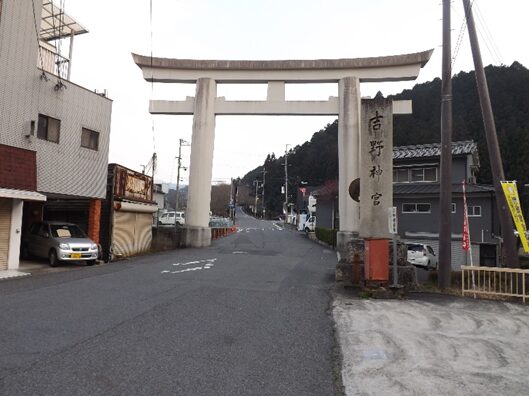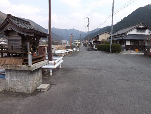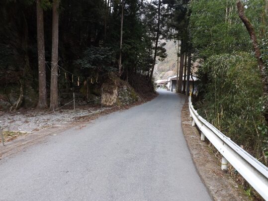 鳥居の左を入ったところでT字路になっている、正面の道で国道169号線で宮滝を通り熊野へ通じる 東熊野街道 と鷲家に通じる伊勢街道南回り