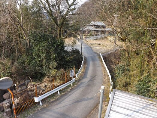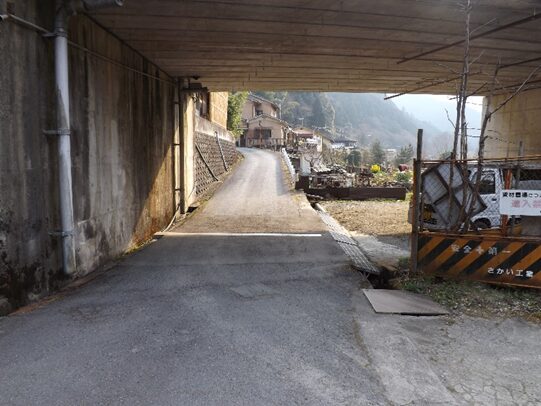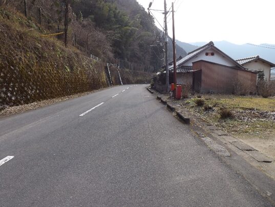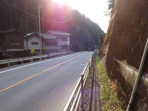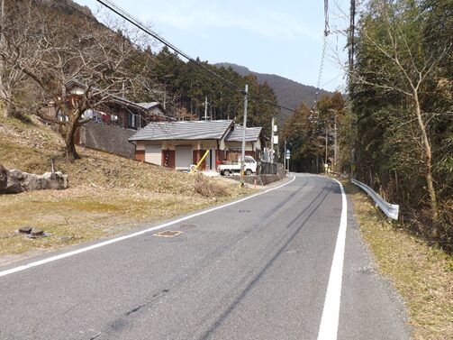 その先で、道が民家で消滅しており左に曲がり国道に上り合流する