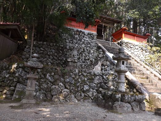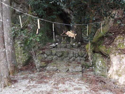 矢治の氏神で祭神は、岩穂押開神社殿の背後には巨岩が聳え威容を誇っている