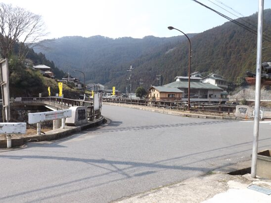 分岐を右に行く道は現在の熊野への国道、右の道すぐ先、現在の宮滝大橋で、かつての旧柴橋はもう少し右の川幅が狭くなったところにあったとのことです