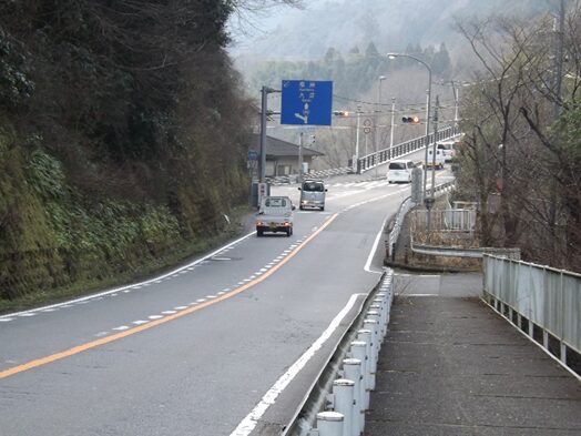 右に曲がり国道に合流するところ