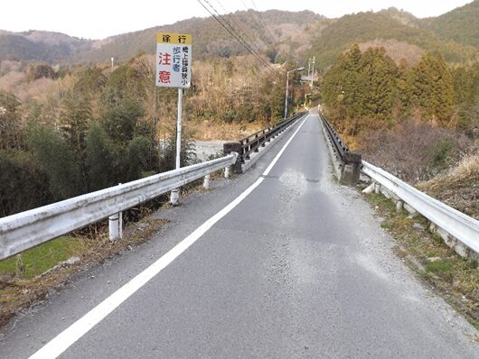 鷲家谷バス停のすぐ先で鷲家川に架かる大矢橋が右に見ます