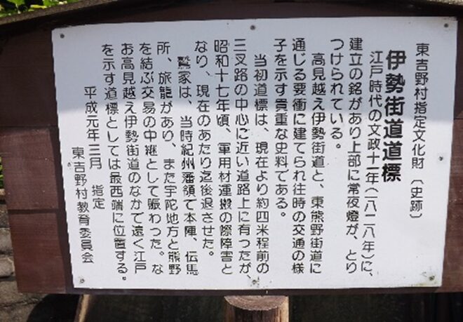 この辻は、紀州和歌山城からの大和街道、伊勢南街道へと左の小名峠を越えてきた辻で、南ルートの伊勢南街道とも合流します。