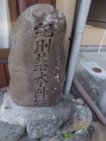 八幡神社参道入り口街道沿いに 紀州藩本陣跡の石碑