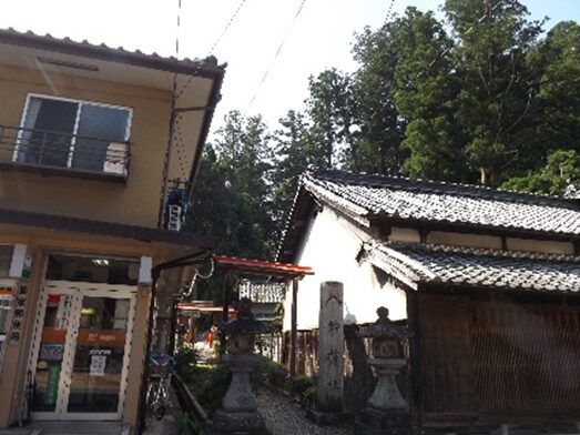 お寺の前旧道を挟んだ向かいに 八幡神社