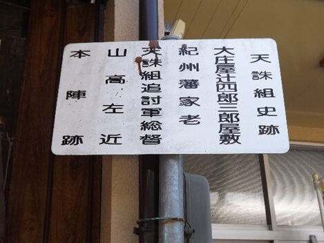周辺を少し回ります。辻の角に立つ、天誅組史跡 油屋藤堂藩陣屋跡