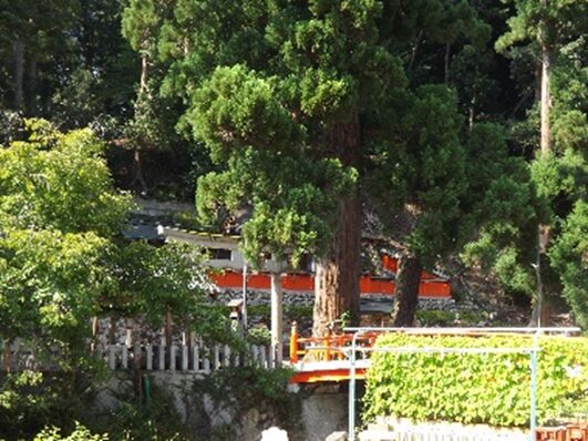 大木に覆われた八幡神社