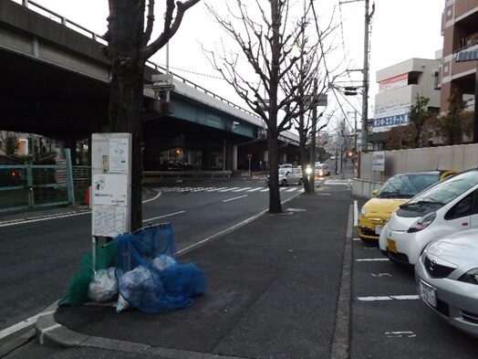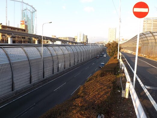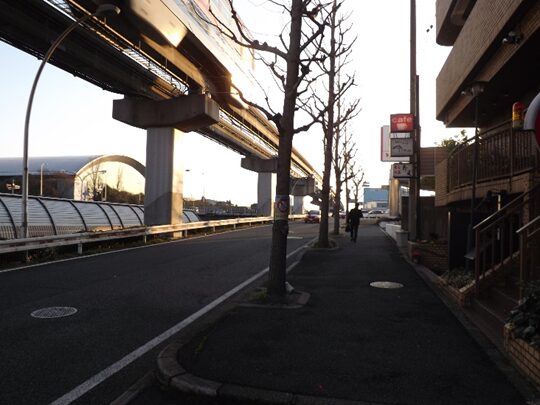 やがて中央環状線やモノレールに遮られるので右に折れます