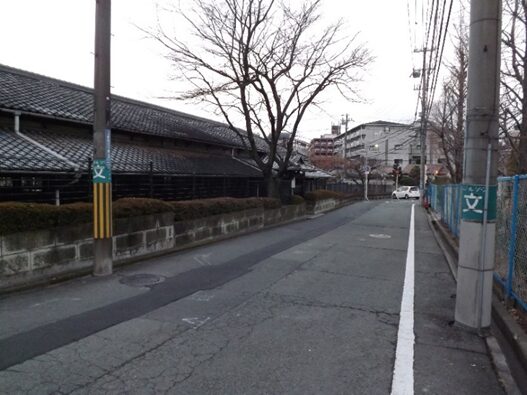 左の道を進みます、かつてはこの道は細く、天竺川が流れていた