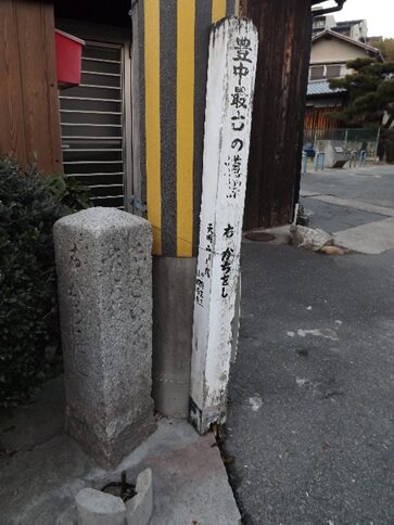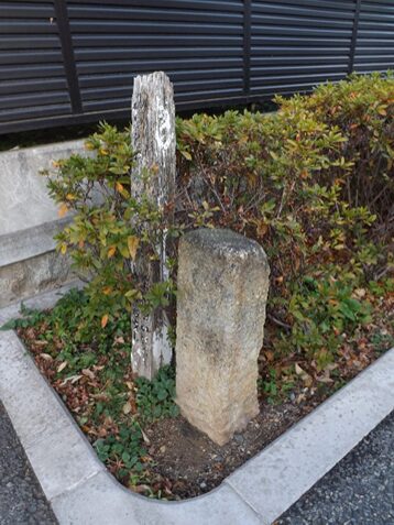門前の道路沿いに新しい 道標「右 箕面 中山道」