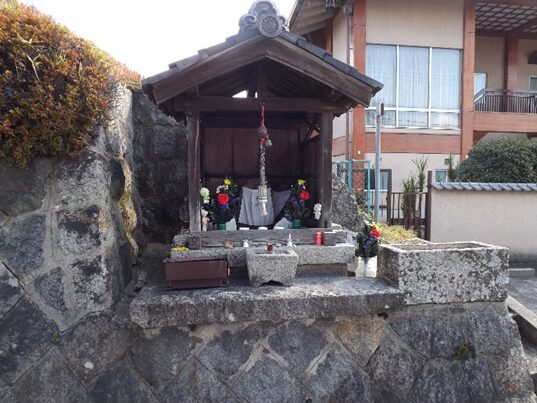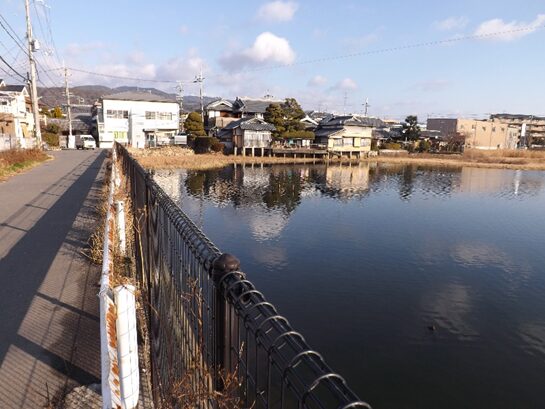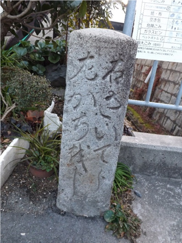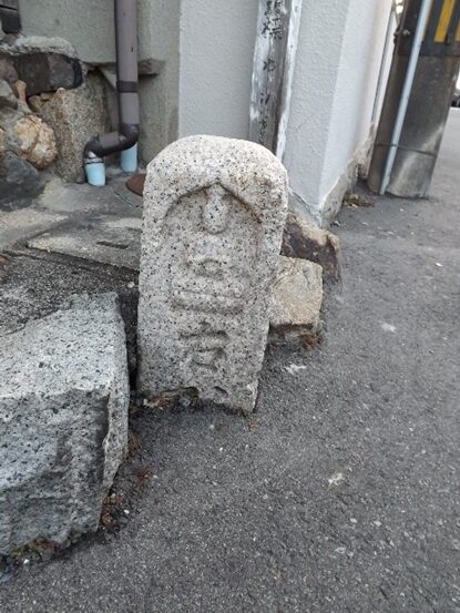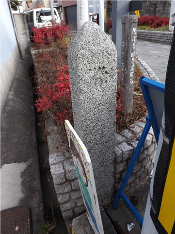 池の過ぎた袂に今宮会館が建つ其の傍に 道標
