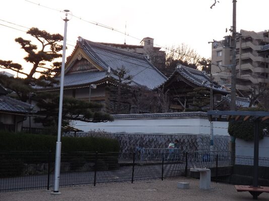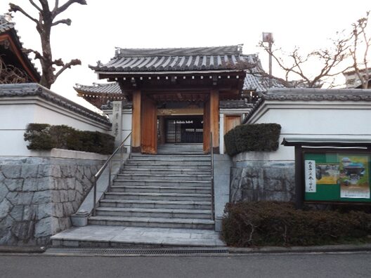 交差点手前右には、お寺と思えないモダンな 護国寺
