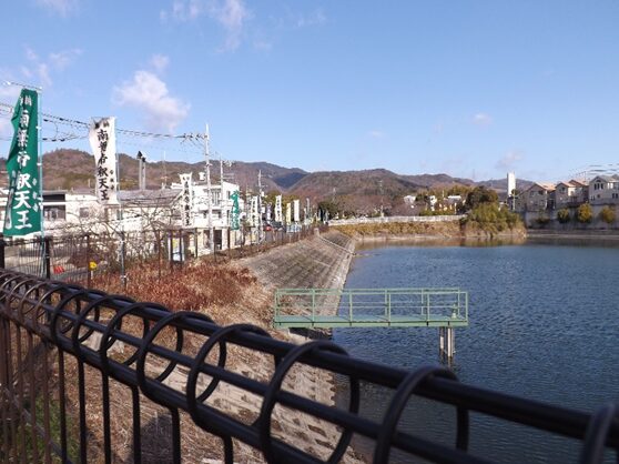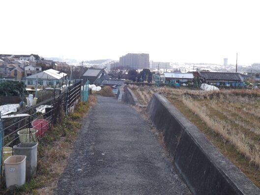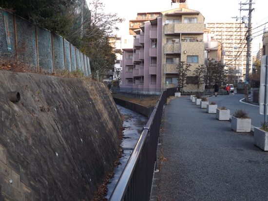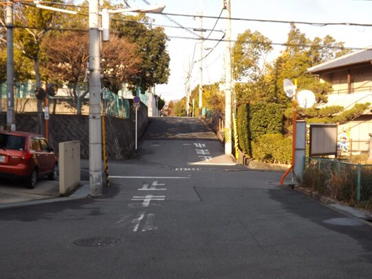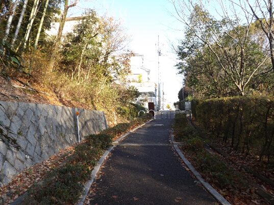 千里地区に入り暫く新しい住宅の中を大きく蛇行しながら緩やかな坂を上っていく
