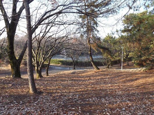 交差点を越えた左に、樫ノ木公園と樫ノ木池