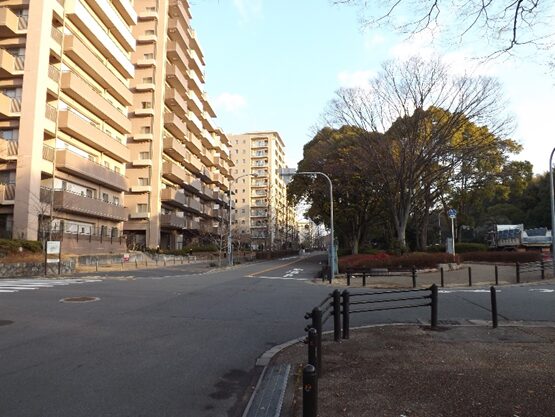 左は千里の住宅地が広がり、右は広大な千里中央公園と環境に恵まれた地域です