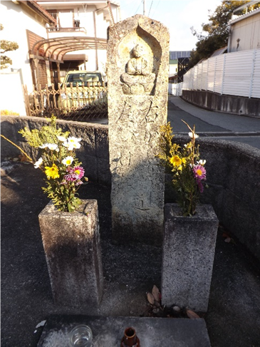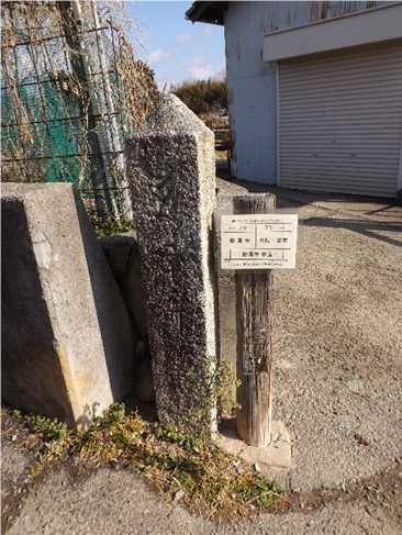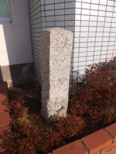 200m程進んだ左にブロック塀にもたれかかるようにある奥の 徳林寺石標 上新田2
