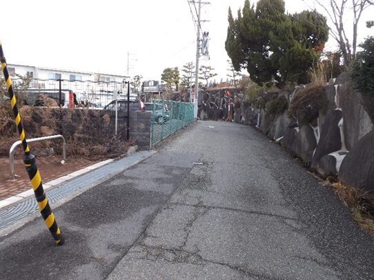 やっと配水場・府立箕面支援学校のところで突当りになります右に折れます