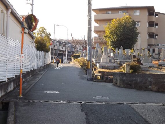 横断して東エの道を真っ直ぐ暫く進んでいきます。右に箕面墓地公園があります