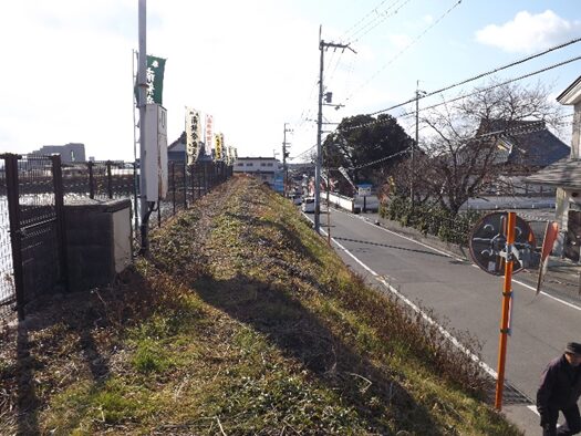 街道に戻り緩やかな坂を上り、左新田小学校東側で右斜めに進む