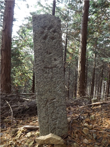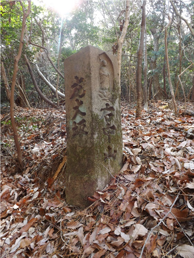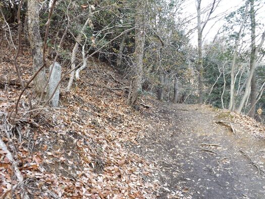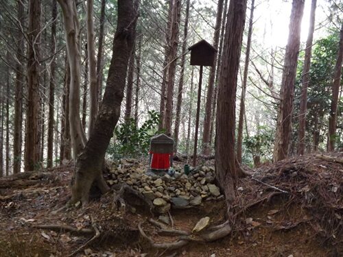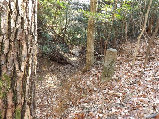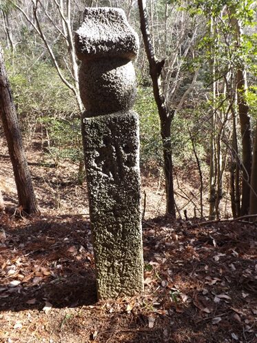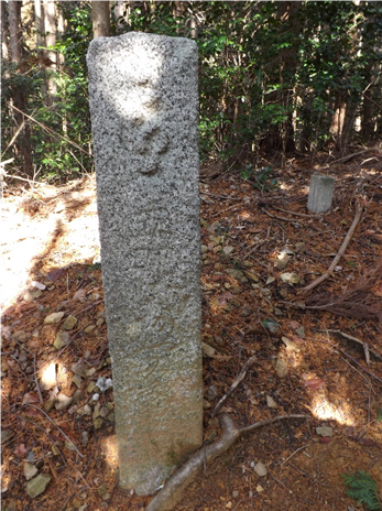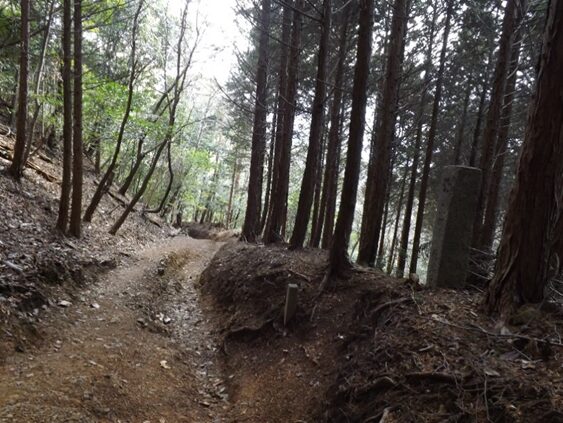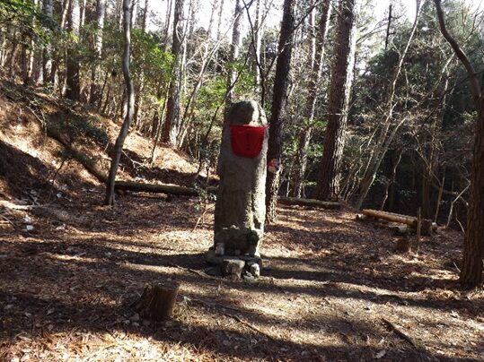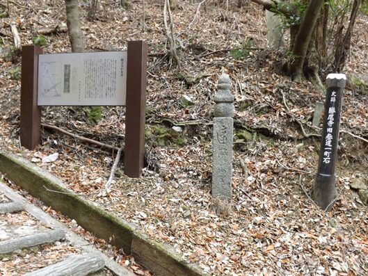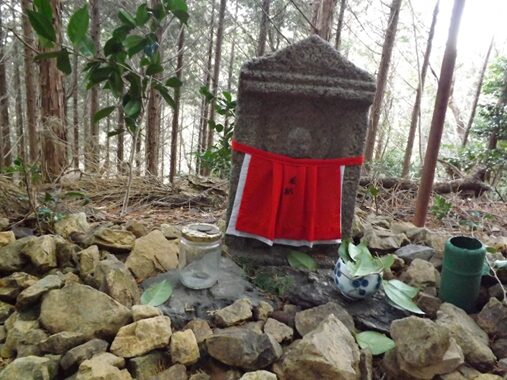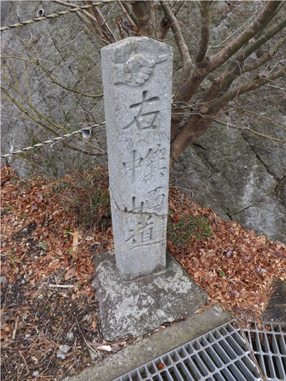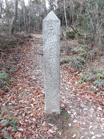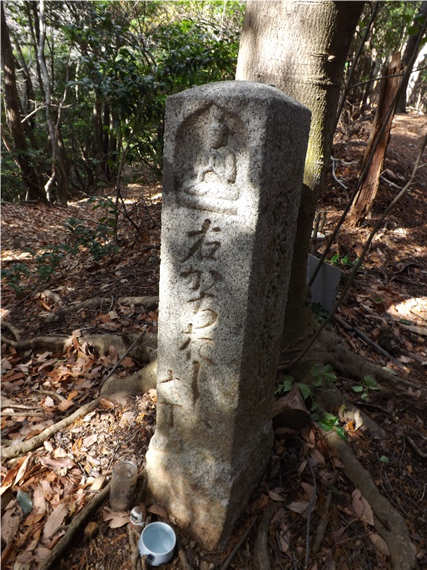 この道標は下から登ってきて間違って左に下らないように立てた道標。尼さんが立てたとのこと