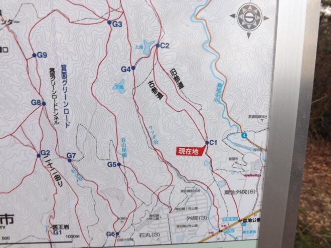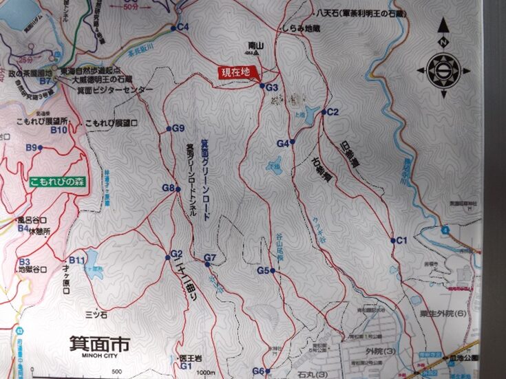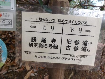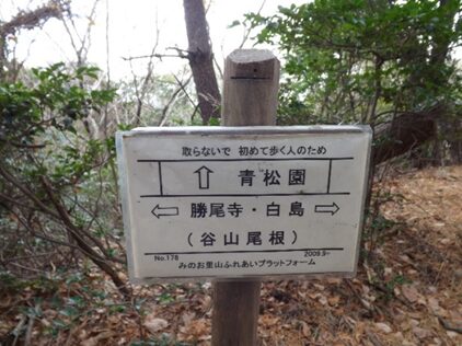 帰りは勝尾寺参詣道に続き、今来た道を少し戻り谷山尾根道を白鳥1丁目まで下る。